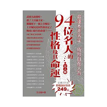 從容處世厚黑兵法 | 精明人聰明人明白人─態度決定你的成敗 | 94位名人的性格及其命運(女人篇) | |||