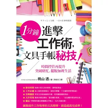 1分鐘進擊工作術,文具手帳秘技!:時間控管再提升,突破瞎忙,擺脫加班生活 | 日系百元文具活用術:48種最強整理x學習x手帳x筆記本的創意好點子 | 哈佛商學院教我的30歲就定位-成功術:公司留你、同業挖角,60個幫自己「增值」的工作提示大公開! | |||